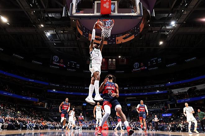 本场比赛中,雄鹿虽然输掉了比赛,但是球队的先发后场大将小凯文-波特(Kevin Porter Jr.)的表现并不理想。小波特全场出场31分01秒,投篮15中12,三分线外6中5,罚球2中1,得到了全场最高分30分外加4篮板5助攻3抢断的数据,正负值也是达到了全场最高的+13。小波特在进攻端大杀四方,他展现出了全面的得分能力,他的进攻效率相当突出,他的突破能力和终结能力出色,他在中远距离投篮方面也是保持了很高的稳定性,他在传球和组织方面能够起到一定的作用,甚至他在防守端的表现都是极其出色的。小波特在场上时球队的局面也是相当不错的,这也能够体现在他超高的正负值上。可惜问题就在于,除了小波特,雄鹿很多其他球员的表现都非常糟糕,他的努力完全没有办法起到作用,他都打成这样了球队还是赢不了球,真是一件有些无奈的事情。