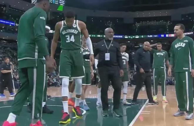 今天开场,比赛只打了3分钟,字母哥就退场了。