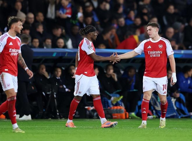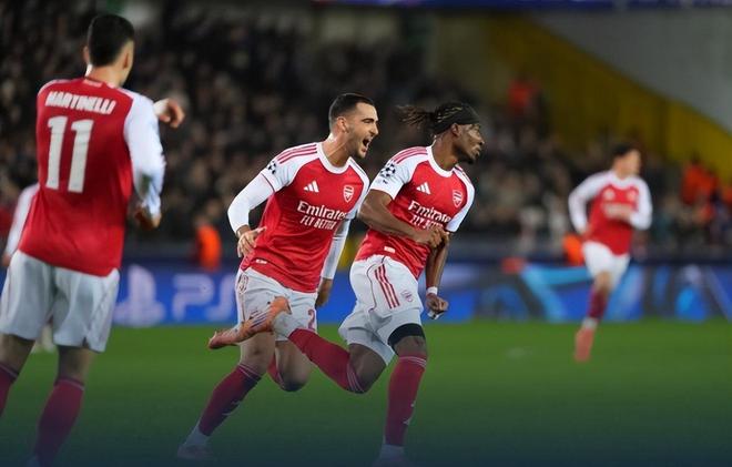 顶住对手半场结束前的威胁后,下半场回来的阿森纳迅速扩大优势,第48分钟,苏比门迪左侧强行下底传中并且带走防守注意力,马杜埃凯门前近距离头球梅开二度,2:0!今年夏窗加盟阿森纳后,马杜埃凯3粒进球都是在欧冠打进的。第56分钟,布鲁日边路再次让阿森纳边锋拥有一对一突破机会,马丁内利果断突破内切到禁区前沿打出十分角远射,利物浦旧将米尼奥莱鞭长莫及,3:0!马丁内利本赛季已经连续5场欧冠比赛代表阿森纳破门得分,他也就此成为2000年4月亨利以来,阿森纳首位能够代表球队在欧战中至少连续5场进球的球员。