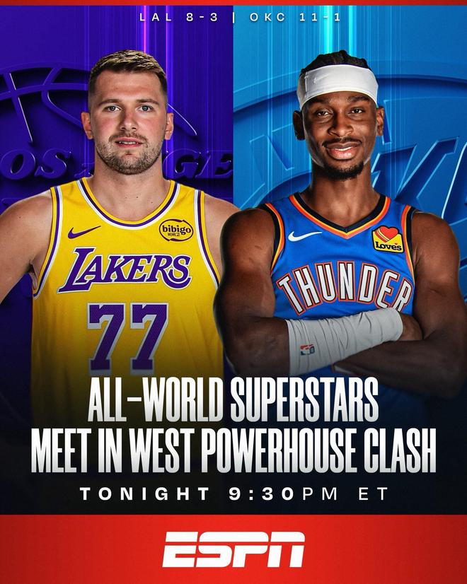 2025年11月13日 雷霆29分大胜湖人取4连胜 SGA30+5+9 东契奇&里夫斯三分12中1